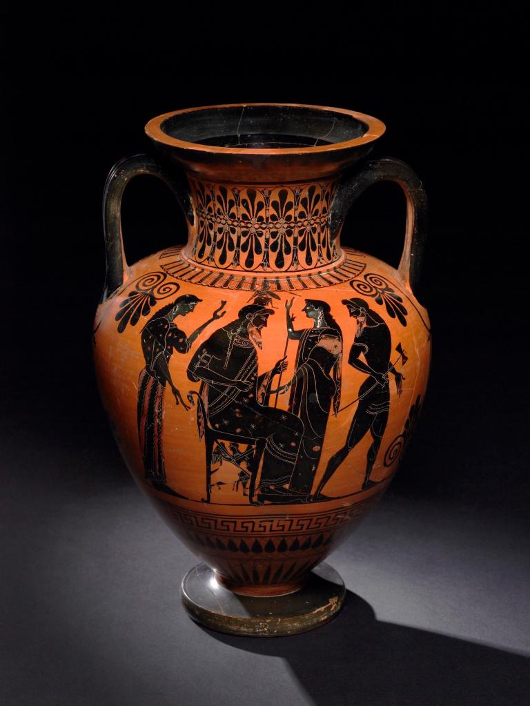 Birth of Athena depicted on a red-figure neck-amphora, c. 515 B.C., Vulci in Italy.